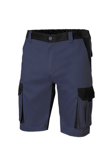 103021B, cierre central con cremallera y boton. Refuerzo de tejido trasero, cinturilla elastica, doble costura de seguridad. Costuras con hilo de contraste, 2 bolsillos franceses, 2 bolsillos de fuelle, con doble fuelle central, tapeta, velcro y tiradoresy 2 bolsillos traseros de parche, con tapeta y velcro. Color Azul marino/negro.