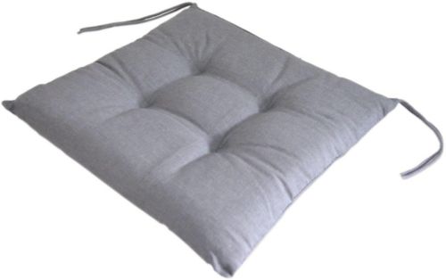 Cojin cuadrado con lazos y puntadas; Tejido mixto de Algodon Poliester; Relleno de poliester y Poliuretano expanso.