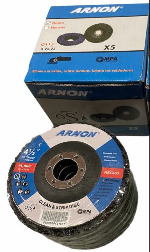 DISCO ARNON. Profesional. 230x2x22,23mm. Disco abrasivo de fibras de nylon resistentes con carburo de silicio grueso. No daña materiales. Para limpieza de soldadura gruesa, materiales delicados, uso sobre pinturas, yeso, metales,gomas. Color Negro. Dureza alta
