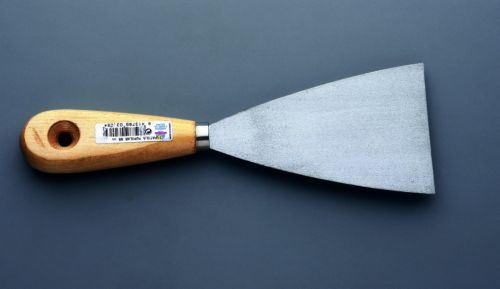 Uso eventual. Para todo tipo de trabajos. Recomendado para emplastar, eliminar restos de pintura, papel, etc.. Hoja de acero pulido, mango de madera natural barnizada.