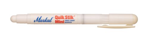 MARCADOR PINTURA MARKAL. QUIK STIK MINI, pintura solida, diseño compacto, con soportte de plastico que se gira para avanzar el marcador. Seca rapidamente. Marcas permanentes intensas sobre la mayoria de superficies. Resistente a la intemperie y a los rayos UV. Color blanco.