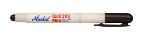 El marcador de pintura solida Quik Stik Mini de diseñocompacto viene en un comodo soporte de plastico que se girapara avanzar el marcador, y es ideal para marcaje con lineasmas finas sobre superficies lisas o rugosas. Esta version maspequeña del marcadorMarkal Quik Stik se guarda facilmenteen el bolsillo o en el cinturon de herramientas. Al girar laperilla del soporte, se avanza el marcador sin problema y estopermite su uso por completo sin desperdicio. La pintura dealto rendimiento se seca rapidamente ypermite dejar marcaspermanentes intensas sobre la mayoria de las superficies.Caracteristicas y beneficios: Marcas de pintura brillantes de secado rapido que se seca en 57minutos El soporte compacto de plastico que tiene un tapon con clip seguarda facilmente en el bolsillo y mantiene limpias las manos y laropa Marcas en practicamente cualquier superficie: húmeda, lisa,rugosa o caliente Pintura resistente a la intemperie y a los rayos UV para marcasduraderas El marcador de pintura solid