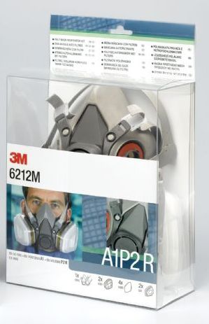 MASCARA 3M. 6212M, media máscara 6200 + filtro, listo para usar. A1P2 R. Una solución práctica para una variedad de riesgos en la industria, construcción, agricultura, pintura, etc.