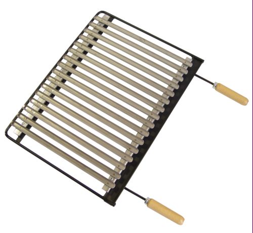Parrilla inox especial para barbacoas, con la caracteristica que tiene bandeja para las grasas. Puede usar tanto leña como carbon vegetal.