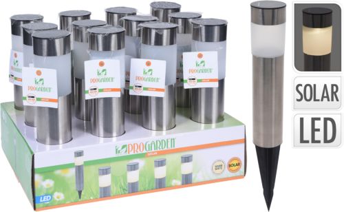 LUZ SOLAR RECARGABLE . 37 CMS INCLUIDO PINCHO. INCLUYE BATERIA RECARGABLEACERO INOXIDABLE SOLAR LIGERO CON 1X LED BLANCO CÁLIDO, FORMA DE CILINDRO, CABEZA DIA 6CM, LONGITUD TOTAL 37CM INCLUYENDO PUNTA, PANEL SOLAR 2V / 40MA POLYCRYSTALLINE, CON 1X AA NIMH 150MAH BATERÍA RECARGABLE, CON ENCENDIDO / APAGADO, CON CIERRE DE 12 TABLONESSOLAR LIGHT STAINLESS STEEL WITH 1X WARM WHITE LED, CILINDER SHAPE, DIA HEAD 6CM, TOTAL LENGTH 37CM INCLUDING SPIKE, SOLAR PANEL 2V40MA POLYCRYSTALLINE, WITH 1X AA NIMH 150MAH RECHARGEABLE BATTERY, WITH ONOFF SWITCH, WITH REMOVABLE STICKER, 12PCS IN OUR D
