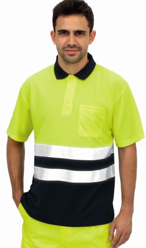 Polo Alta Visibilidad Bicolor Manga Corta Azul S