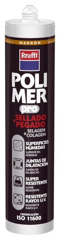 SELLADOR KRAFFT. POLIMER PRO, Sellante adhesivo híbrido de medio módulo sin isocianatos de última generación. 290ml. Color marrón.