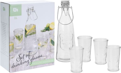 Set Botella 1l + 4 Vasos 250ml Cristal Cc1100130