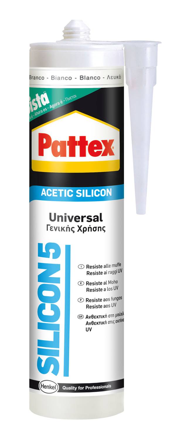 SILICONA PATTEX. SILICON 5, sellador de silicona acética. Ideal para el sellado de baños, platos de ducha, bañeras, inodoros, cocinas y ventanas. 280ml. Color blanco.
