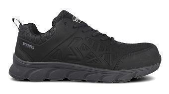 Textil hidrofugado y transpirable, con piezas de refuerzo en la zona de la punta del talon. Es un calzado muy comodo y de una daptacion al pie estraordinaria. Piso de EVA y Caucho nitrilo. Maxima absorcion de shock. Diseño de canales transversales de flex. corte: textil. suela: eva caucho nitrilo. puntera: fibra de vidrio. plantilla: antiperforacion textil